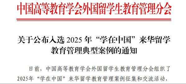 本网讯近日,中国高等教育学会外国留学生教育管理分会公布2025年“学在中国”来华留学教育管理典型案例入选...