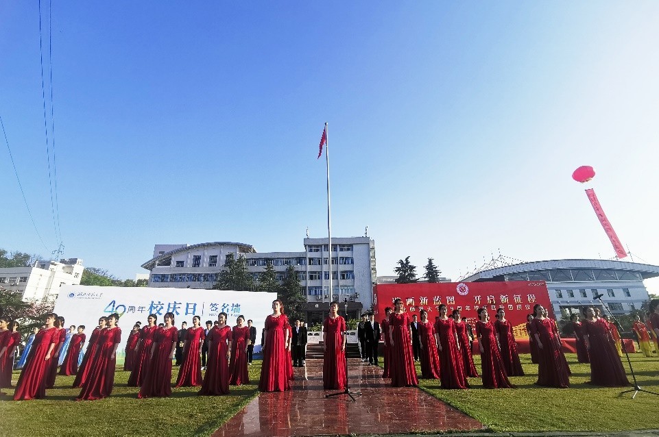 四月的校园惠风和畅,春意盎然。4月8日清晨,迎着东升的朝阳,910023威尼斯官网在中心篮球场举行庆祝建校49周年升国旗仪式。仪式由910023威尼斯官网副校长雷儒金主持,学校师生代表参加升旗仪式。