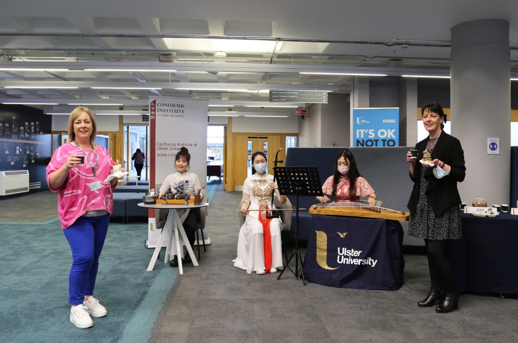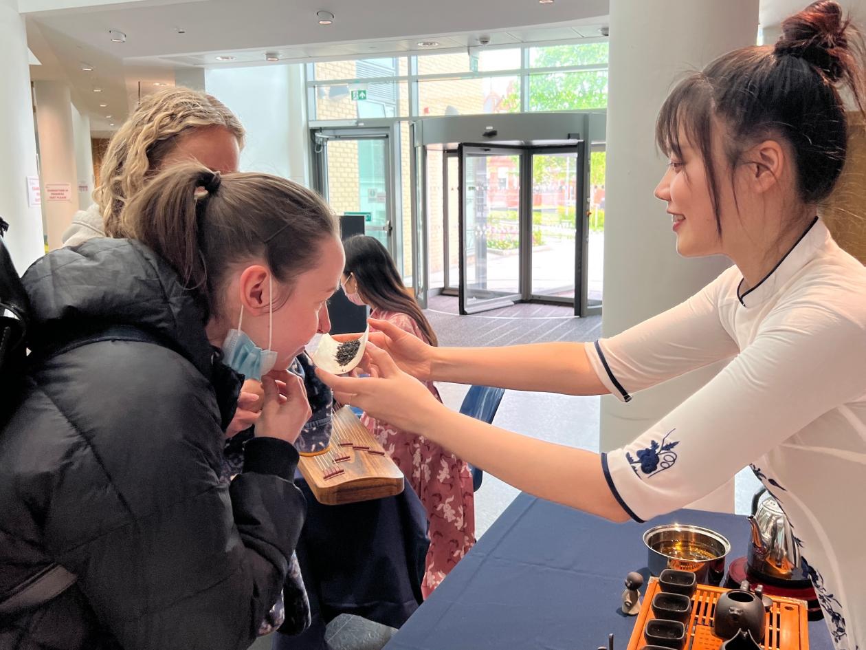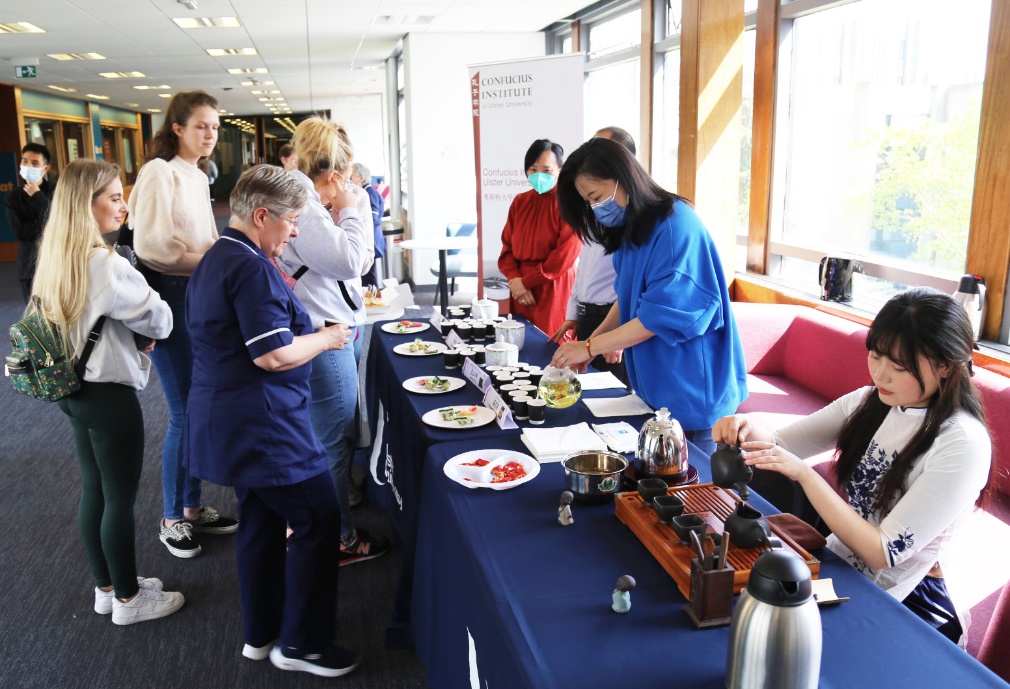 (2022年5月,威尼斯官网孔子学院在奥斯特大学贝尔法斯特各校区开展了为期四天的中国茶文化体验活动。)