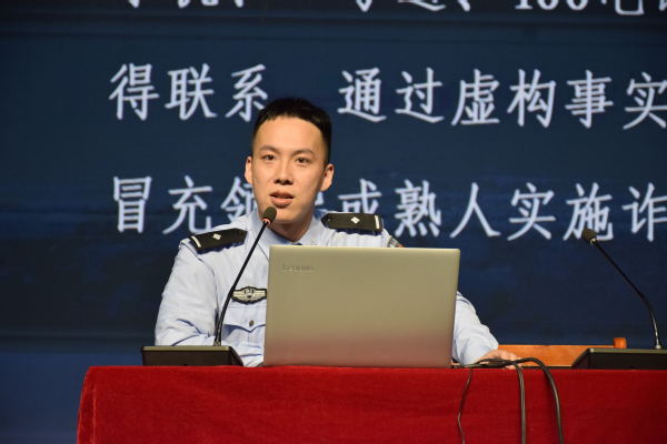 徐梁围绕什么是电信网络诈骗、大学生容易遭遇哪些电信网络诈骗、如何防止个人信息泄露、如何防范电信网络诈骗四个方面开展讲座。他具体阐释了网络兼职诈骗、网络购物诈骗、助学金诈骗等常见诈骗类型,并结合具体案例分享了补救措施。他提到,在网络媒体快速发展的当下,诈骗手段变化快、类型多,同学们在日常生活中要戒除贪恋、不惧恐吓,牢记反诈骗“六个一律”和“八个凡是”,坚持不信、不理、不汇款,同时,下载好国家反诈中心APP并确保打开来电、短信预警权限,若遇到诈骗第一时间报警寻求帮助。活动最后,经济管理与法学院的同学带来了防范电信网络诈骗的情景剧表演,号召大家时刻绷紧防范之弦,谨防电信网络诈骗。