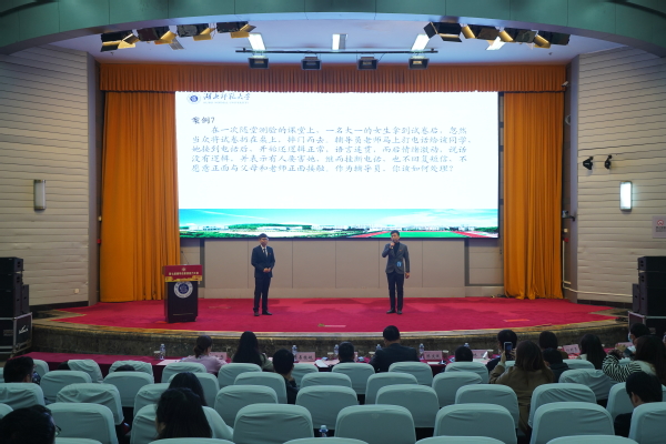 案例研讨环节中,参赛选手两人一组,以“我提问,你回答”的方式围绕案例共同辨析原因、研讨对策、总结规律。七组选手凭借丰富的学生工作经验和扎实的理论知识储备,用生动的语言表达精准剖析案例,提出解决思路和可行方案。
