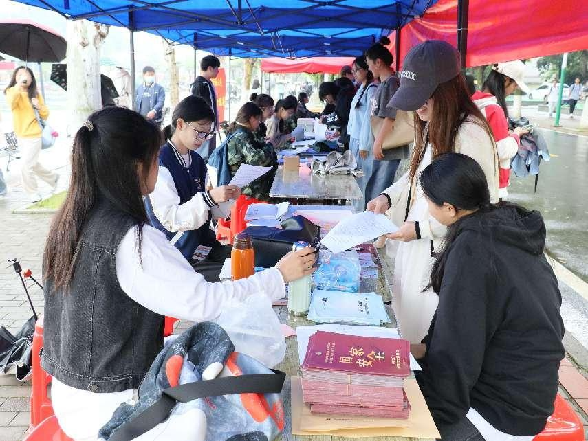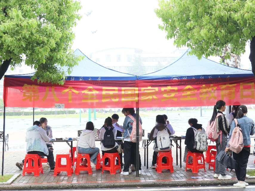 三、依托校园学生组织,发挥主观能动性强化国家安全教育力度。学校举办了第八个全民国家安全教育日校园宣传活动,现场由校自律委员会同学组织开展了“国家安全知识竞答我参与”、“国家安全知识标语记忆我同行”、“国家安全知识宣传我先行”、“国家安全名词解释我能行”、“国家安全标识配对我要行”等趣味活动,寓教于乐,让同学们在获得乐趣的同时也收获了安全知识。活动期间发放关于“4·15全民国家安全教育日”的宣传手册千余册,现场参与互动答题人次超千余人次;退役复学的同学向前来咨询的同学分享自己的军旅故事、讲解相关政策、答疑解惑并发放征兵宣传手册。同学们热情高涨,积极参与互动,现场氛围热烈,人气满满。
