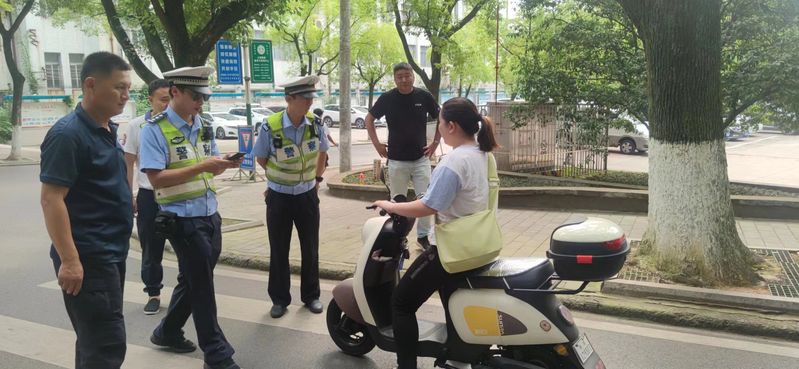同学,驾驶电动车一定要佩戴好头盔”,整治行动中,黄石港交警大队的警官们和学校保卫处工作人员对违规驾乘的同学进行文明劝导和教育宣传,引导学生自觉遵守交通安全法规,做到规范行车、文明行车、有序停车。当天,黄石港交警大队还对校园周边无牌电动车进行了现场查处。
