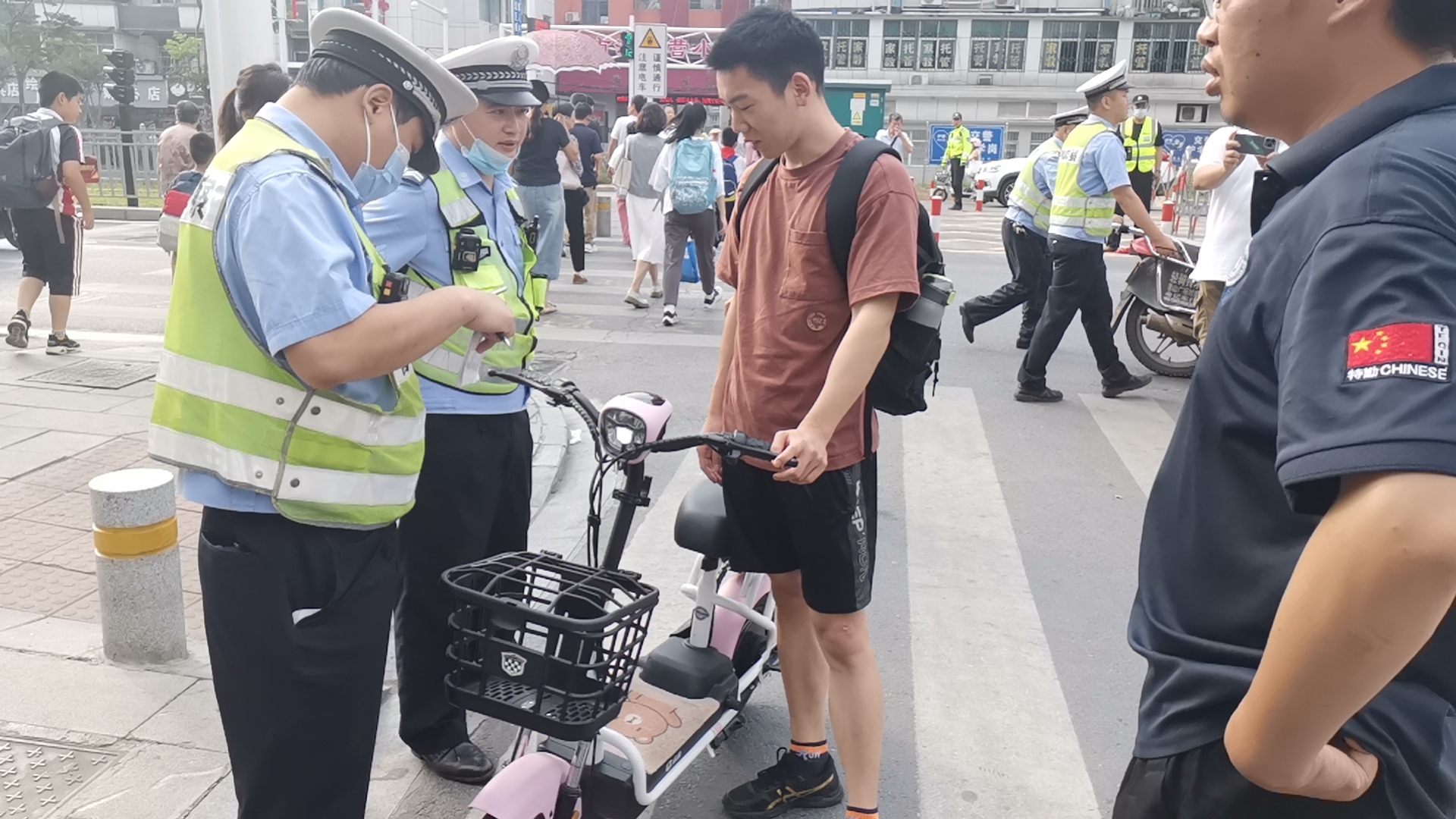 交警现场劝导学生安全驾驶