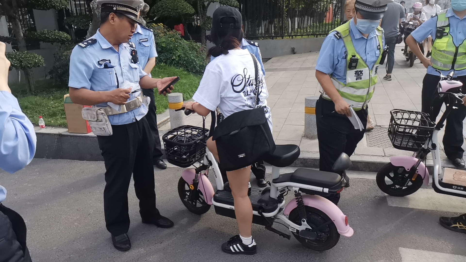 交警现场查处东大门无牌电动车
