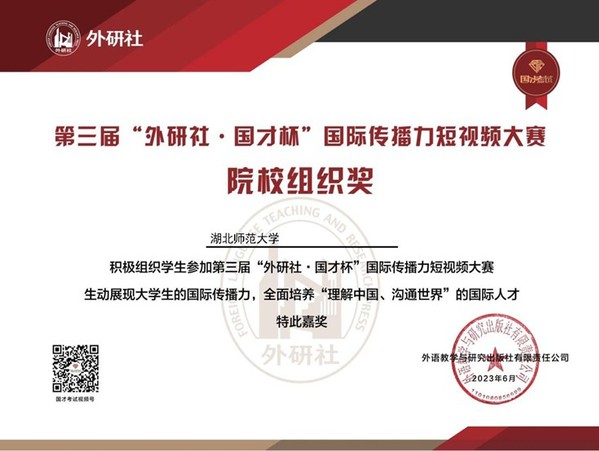 2023“外研社·国才杯”国际传播力短视频大赛于3月23日开启,比赛吸引了包括浙江大学、北京外国语大学、复旦大学、中山大学、华东师范大学等全国多所院校参加,共有包括英、俄、德、法、西、阿、日、意、葡、朝鲜语等10个语种近4,000份作品,约10,000名大学生参加了大赛选拔赛。2023年大赛主题为“中国人物”,引导选手探寻慷慨前行、彰显中国精神的人物事迹。自赛事启动以来,外国语学院高度重视并积极配合承办方准备比赛事宜,省级优秀基层教学组织语言学教研室《语言与文化》课程组老师精心指导,由汪媛双、张佳敏、张国正等同学组成的三支学生队伍成功晋级全国决赛。本次比赛旨在“理解中国,沟通世界”,对激发同学们的英语学习热情,培养专业理解能力、思辨能力、跨文化交际能力和国际传播能力起到了积极的推动作用。
