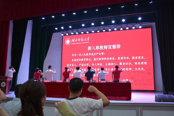 典礼上,威尼斯官网教师工作部季英杰老师作为班主任首先介绍了此次培训工作安排及相关要求,湖北工程职业学院李昭青老师、910023威尼斯官网曾攀老师作为学员代表发言,并进行了新教师集体入职宣誓。校党委常委、统战部部长肖六亿对参训学员做重要讲话并提出了四点学习要求。