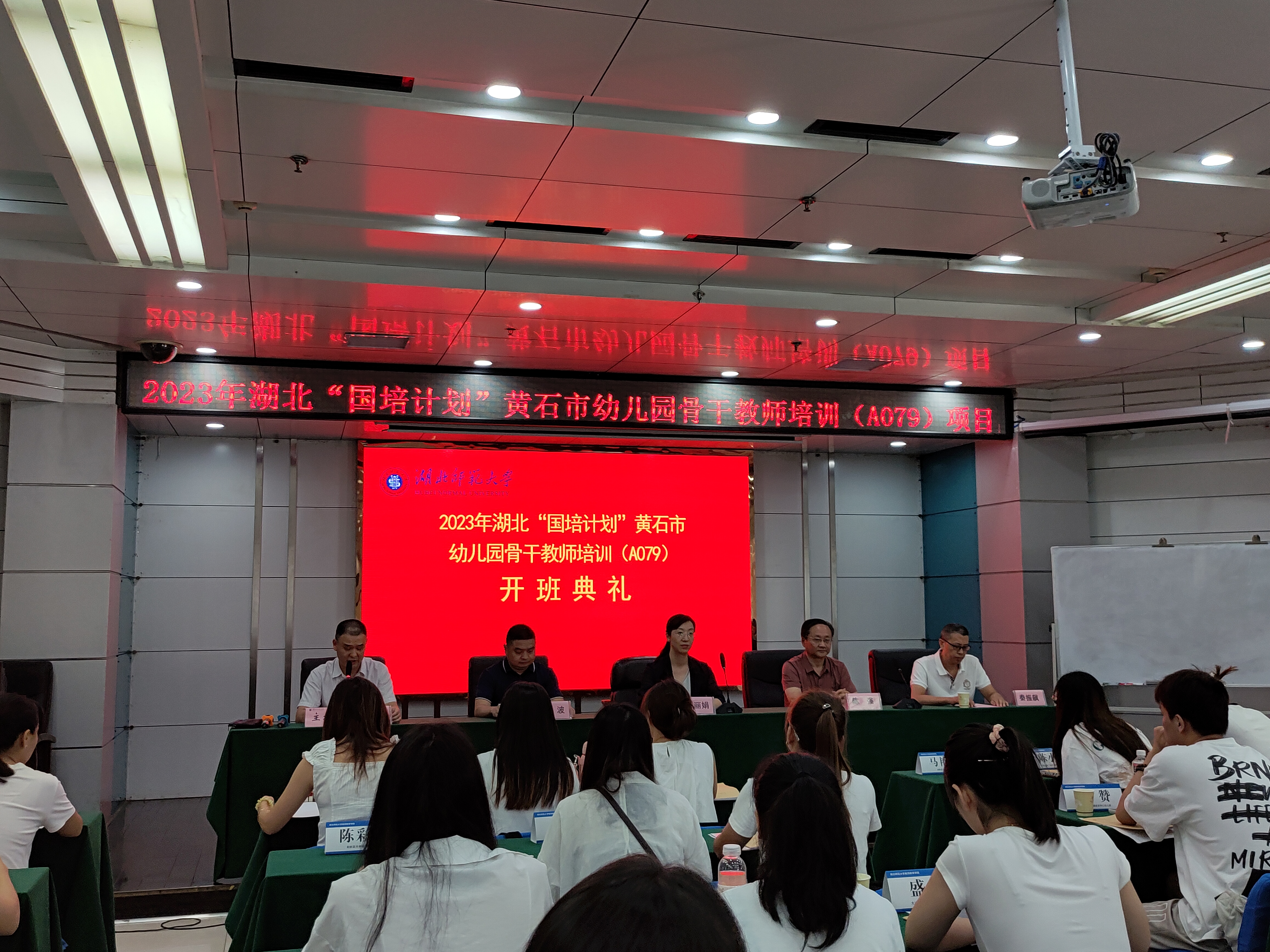黄石市教育局教师发展中心主任汪丽娟,教师教育学院院长陈强、教育科学学院副院长崔波、教师教育学院副院长杨冬伟、项目负责人及管理团队出席开班典礼。来自全市各县区的100名幼儿园骨干教师参加本次研修。