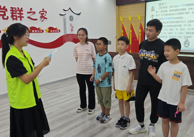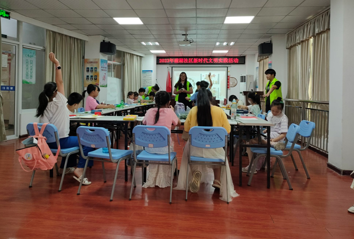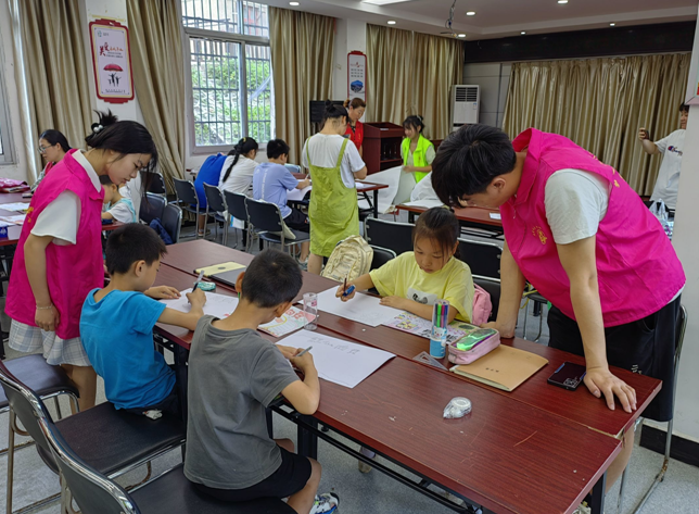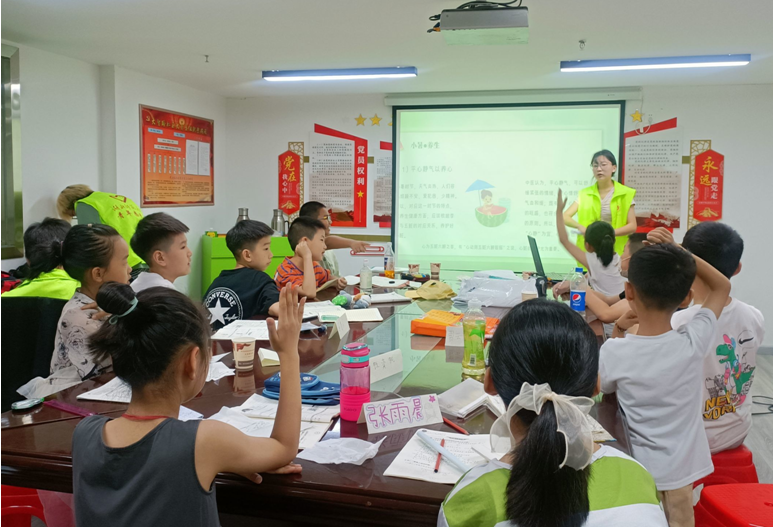 开课第一天,实践队为三个社区的小朋友们安排了一堂暑期安全教育班会,从防溺水安全、食品安全、交通安全、火灾安全四个方面结合身边发生的典型案例进行宣讲,图画相配,音频结合,一个个小故事、一个个短视频,既充分调动了学生参与课堂的积极性,也起到了警示作用,第一堂安全教育课给孩子们留下了深刻印象。“老师,我回家会看着马路两边的车辆的。”“老师,火警号码119我记住了。”“老师,我暑假跟爸爸去游泳馆,不会去湖里的。”……课后,孩子们此起彼伏的话让在一旁旁听的家长和社区工作者们高兴地点起了头。实践队队员们不仅关注孩子身边安全也关注心理健康。“老师,我妈每天要我写3张试卷,我心里有点累。”在大智路社区队员王明硕的心理课堂上,一名小学生在了解心理健康知识后,向他述说。结合孩子们经常遇到的成绩变动,家长态度、朋友关系、周围环境等因素,通过课堂讲解心理健康小知识,引导孩子们正确看待这些问题,积极调整心态,甚至向老师求助,保持一个积极向上的健康心态。“现在的孩子压力大,这种潜在且不易察觉的心理健康也是需要我们家长去关注的,让孩子们早点接触到这些知识也挺好的。”孩子家长彭玉容说。时间虽短,通过队员们近距离与孩子们接触,一对一、一对多,在潜移默化中将身心安全意识刻印在孩子们心中。