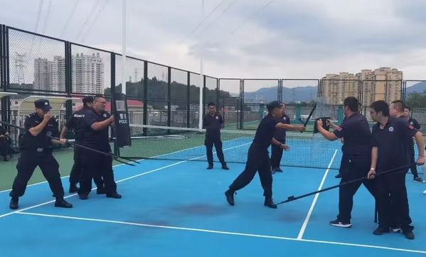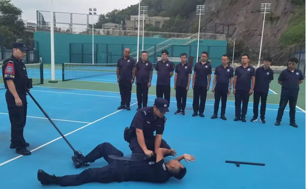当日,黄石港公安分局治安大队前往威尼斯官网组织保卫处,面向30余名专职校卫队员开展业务培训“大练兵”活动。教官分别从理论和实操入手,针对校园实际情况,手把手讲解指导防暴器材的使用、遇到突发暴恐事件的处置、小组控制队形等科目。同时,从实战入手,组织校卫队员开展队列训练,模拟场景进行实战演练,让全体队员切身感受处置要领,有效提升了校卫队员的突发事件应急处置能力。