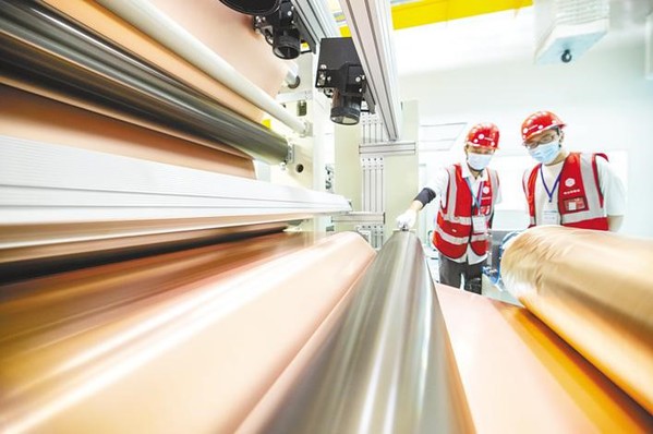 10月26日,黄石诺德锂电铜箔产业园, 经过一年多建设, 这个投资120亿元的巨型项目正式试产。(湖北日报全媒记者 薛婷通讯员吴迪摄)