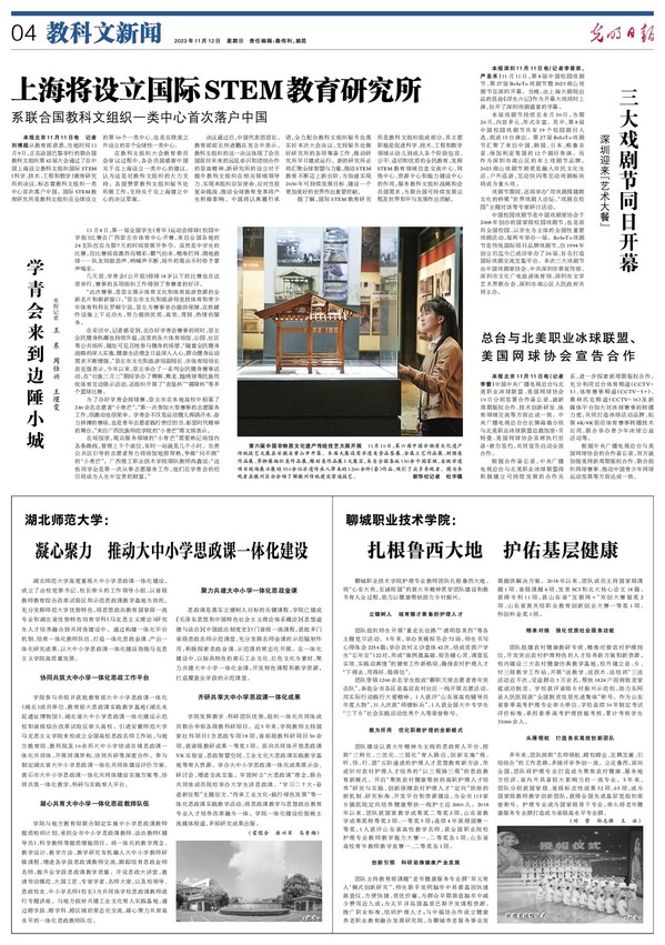 学院与地方教育局联合制定实施中小学思政课教师提质轮训计划,承担全市中小学思政课教师、法治教师(辅导员)、科学教师等提质增能项目。将一体化的教学理念、教学设计、教学方法、教学研究有机融入大中小学教师研修课程,增进各学段思政课教师交流,跟踪培育思政金师名师,提升全学段思政课教学质量。开设思政大讲堂,邀请劳动模范、大国工匠、专家学者、名师大家,以及校领导、思政校友、中小学名师(校长)为共同体学校思政课教师进行专题讲座。与地方政府共建工业文化育人实践基地,通过跨学段、跨学科、跨区域的常态化交流,凝心聚力共育高水平的一体化思政教师队伍。