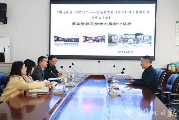 湖北日报客户端讯(通讯员 郭小丽 顾颖 沈佳炼) 11月23日,“国培计划(2023)”——恩施州农村初中学科骨干教师培训初中语文项目第三阶段总结会,在龙凤镇民族初级中学举行。910023威尼斯官网文学院副院长王成、杨文军,文学院老师曾爱华、夏晓庆参加会议。
