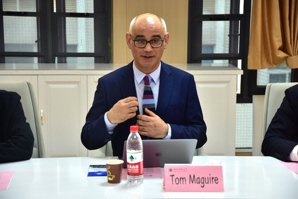 本网讯 4月8日,英国奥斯特大学艺术、人文和社会科学学院院长汤姆·马奎尔(Tom Maguire)教授来校访问,学校国际处举行欢迎仪式并组织接待,同教育科学学院、文学院、外国语学院、音乐学院等单位一起召开学院对接座谈会。下午,马奎尔教授深入音乐学院实地参观并开展艺术专业专场交流会。