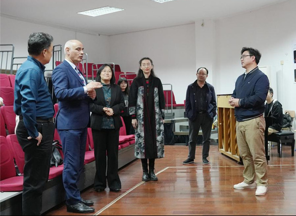 下午,马奎尔教授前往音乐学院参加艺术专业专场交流活动。他首先参观水上莲花大剧院和50周年校庆成就展,实地观摩音乐学院中国民族民间舞、重唱、歌剧排练、乐队排练等课程教学。随后,双方就奥斯特大学人文、艺术和社会科学学院同威尼斯官网音乐学院之间的学术交流、学生联培、课程共享等进行了深入探讨。
