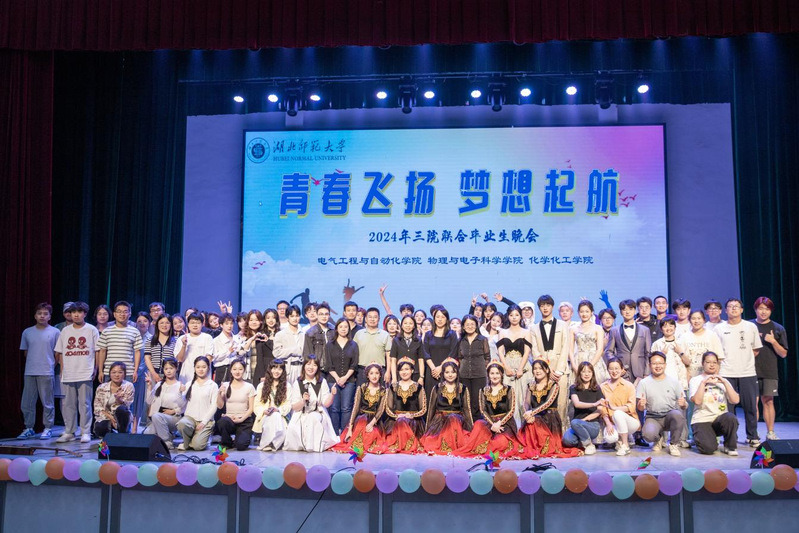 本网讯 蕙风如薰,花开半夏,骊歌轻起,毕业又至。回眸岁月,展望未来,壮志雄飞,青春不散。5月11日晚,由电气工程与自动化学院主办,物理与电子科学学院、化学化工学院协办主题为“青春飞扬,梦想起航” 2024年三院联合毕业生晚会在湖师大礼堂隆重举行。学工部部长李洁副部长胡红贵,电气工程与自动化学院党委书记丁桂兰院长詹习生,物理与电子科学学院党委书记孙丹娟、化学化工学院院长殷国栋,三院其他院领导、辅导员毕业班班主任2024届毕业生、家长代表等参加晚会。晚会通过抖音同步直播,吸引了众多校友、在校生、社会人士观看大家共襄盛,重温青春记忆。