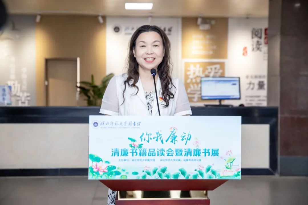 活动中,该校机关第八党支部、图书馆、生命科学学院、读者协会4位师生代表分别上台发言,结合工作和学习实际,分享了清廉书籍品读心得体会;该校纪委副书记、综合室主任刘刚向在场师生推荐了清廉书目;校图书馆馆长易桂姣向与会师生发出读书倡议。