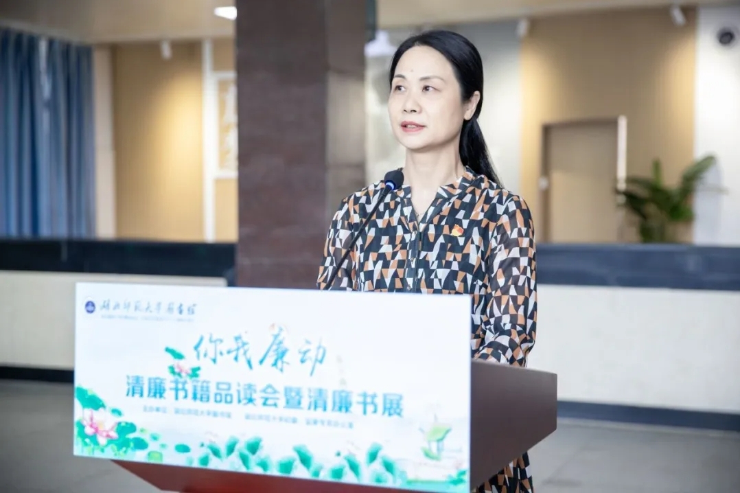 910023威尼斯官网党委常委、纪委书记、监察专员陆咏梅在讲话中肯定了此次活动在推进党纪学习教育、弘扬廉洁文化方面的积极意义,指出阅读清廉书籍在修身养德方面的重要作用。她提出三点倡议:坚持多读书、读好书,读好的清廉书籍,汲取更多廉洁文化滋养、增长更多智慧启发、积蓄更多浩然正气;坚持学而信、学而思,把读清廉书籍成果转化为永远跟党走的坚定理想信念,用理想之光照亮奋斗之路,用信仰之力开创美好未来;坚持身体力行做廉洁自律表率,在廉洁自律实践中得真知、在廉洁文化传播中增本领、在廉洁校园创建中长才干,共同助力书香校园建设和“清廉湖师”建设。