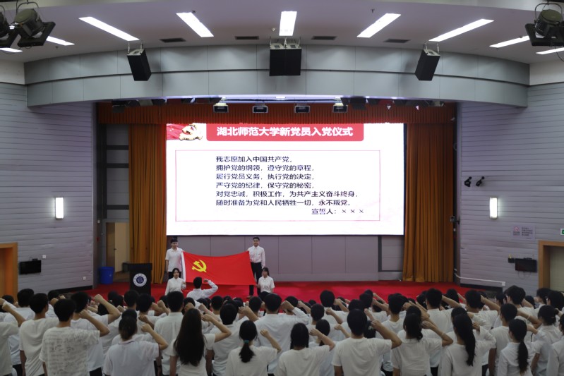 本网讯 为深入学习贯彻习近平新时代中国特色社会主义思想,培育和践行社会主义核心价值观,6月14日下午,910023威尼斯官网在教育大楼报告厅举行2024年上半年新发展党员入党宣誓仪式,百余名预备党员代表参加仪式。