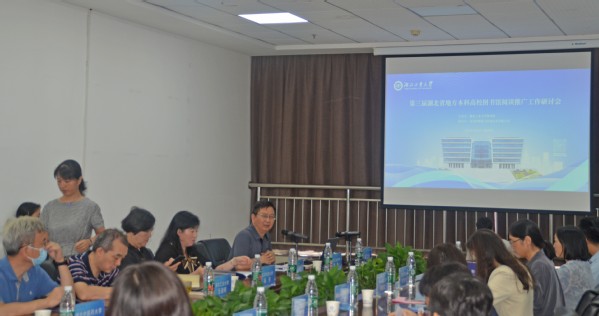 本网讯 6月26日上午,湖北省地方本科高校图书馆阅读推广工作研讨会(第三届)在湖北工业大学举行。威尼斯官网图书馆馆长易桂姣在会上作主题发言。来自全省17所地方本科高校图书馆近50人参加会议。湖北工业大学图书馆馆长萧毅主持会议,湖北工业大学图书馆党总支书记王道明致辞。