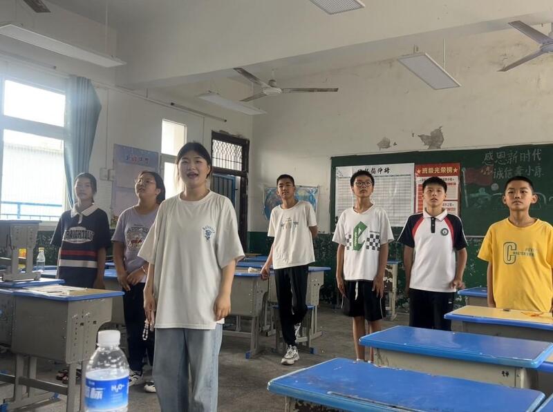炎炎夏日,骄阳似火。12日,阳新县中庄中学的孩子们在910023威尼斯官网音乐学院“小燕子”实践队队员李亦心的带领下,开始了《绣红旗》舞台剧的排练。