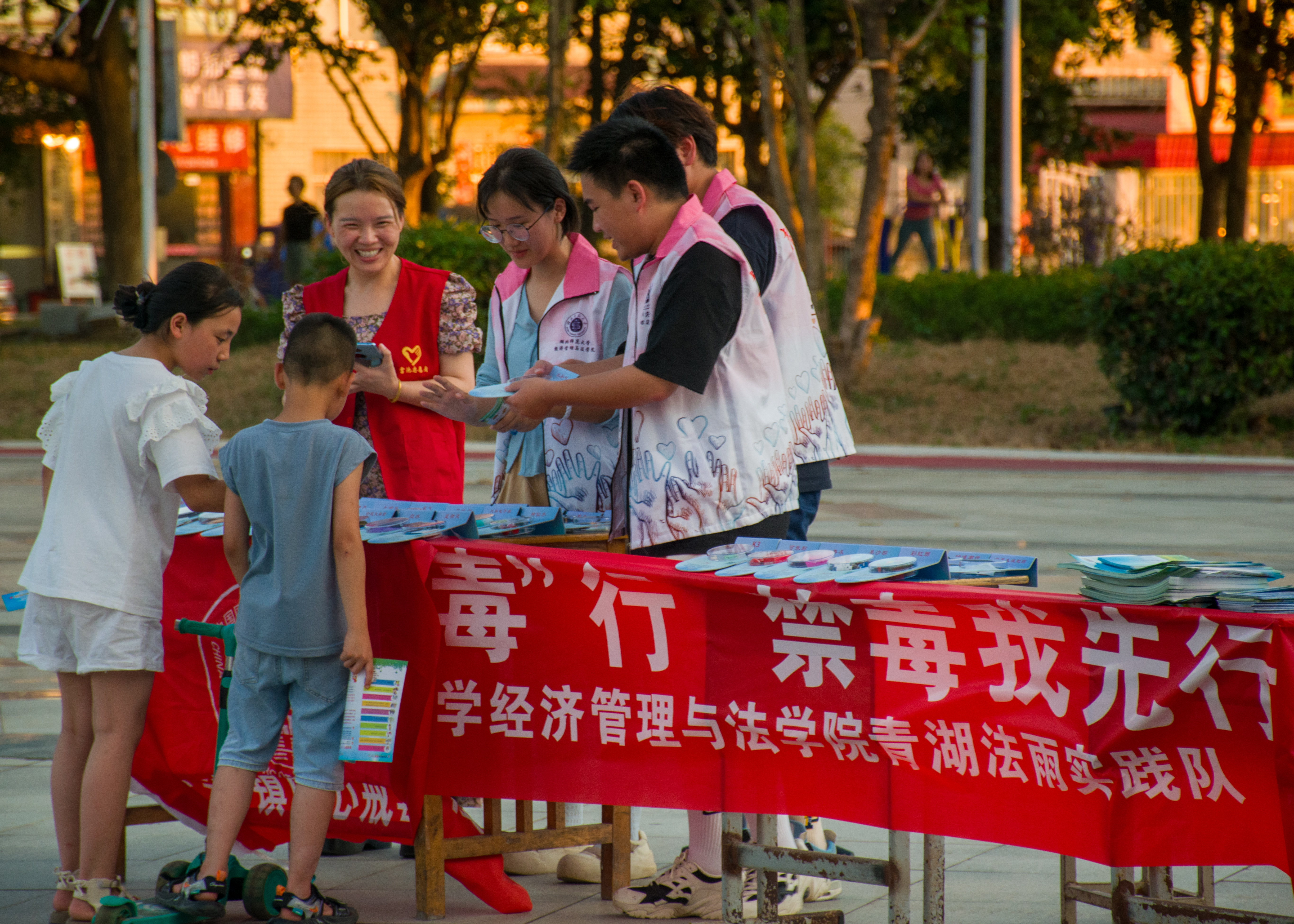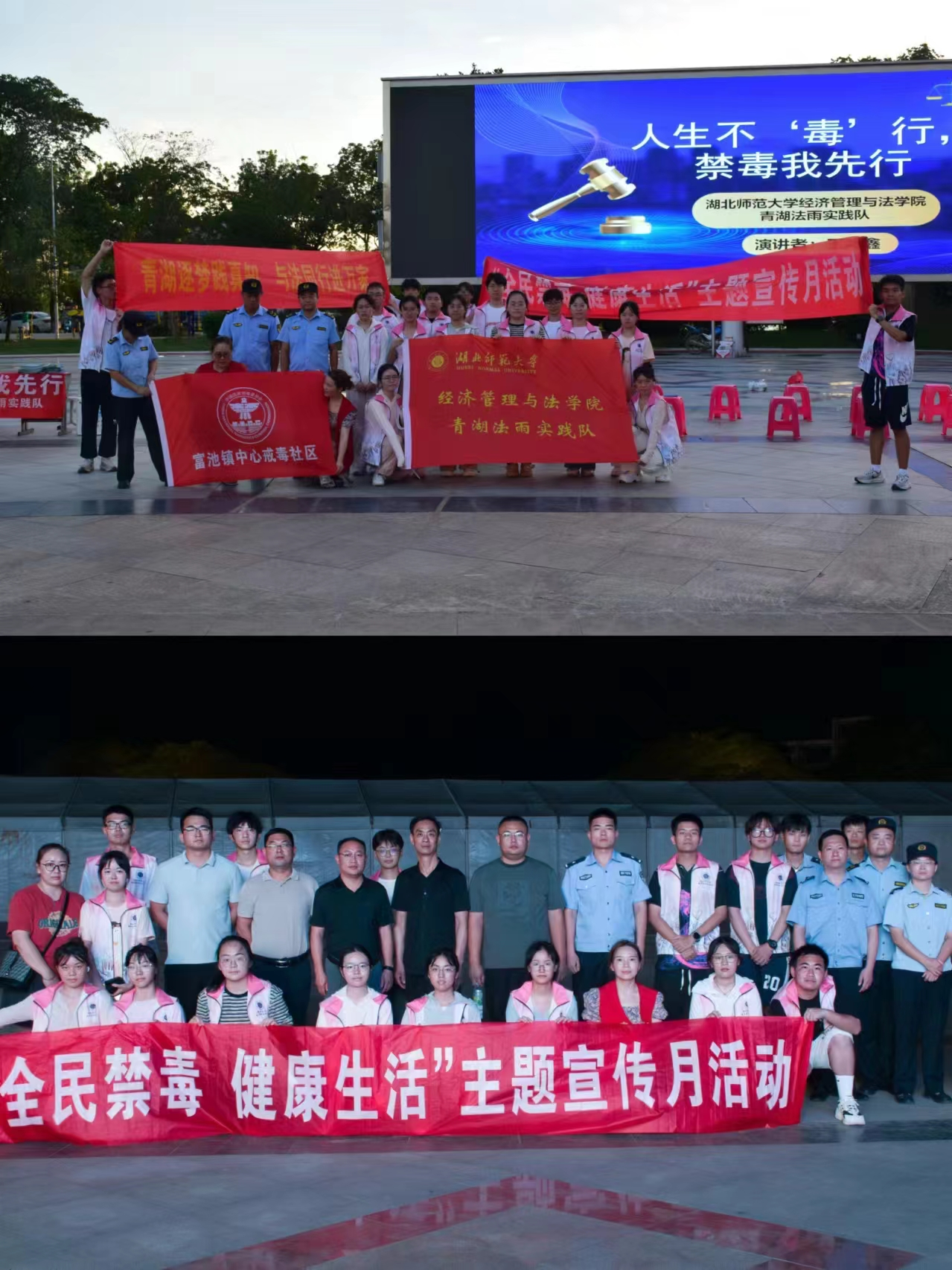 为进一步提高广大群众识毒、防毒、拒毒意识,共同营造无毒、健康的社会环境,近日,阳新县富池镇联合910023威尼斯官网经济管理与法学院青湖法雨实践队在富池广场开展以“全民禁毒、健康生活”为主题的宣传活动。