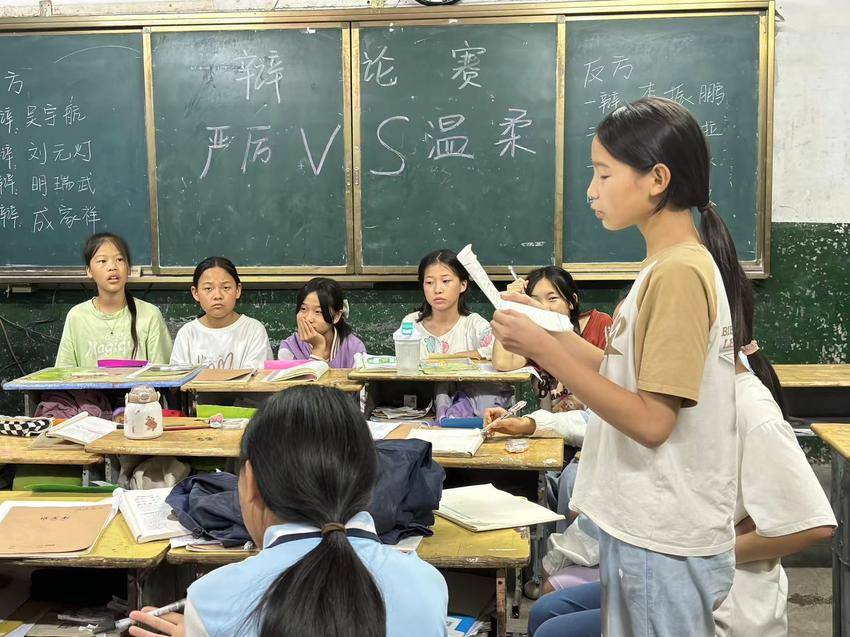 三尺讲台,书写着很多人的执着与梦想,播撒着阳光与希望。小葵花支教团在经历了一星期的支教活动后,纷纷都表达了自己对这群孩子特殊的感情,也真正了解了教学的真正意义所在。他们总结自己教学过程中的收获,反思自己教学过程中仍需要不断改进的地方,也分享自己课堂中与学生发生的趣事。他们灵活采用各种方式,如小游戏,歌曲、辩论赛等将知识巧妙地教授于学生,让学生真正做到快乐地接受知识;同时也将书法、手工、画画等带进了课堂,真正做到了“七彩课堂”。他们在教学中一起与孩子共同进步,相互成就。