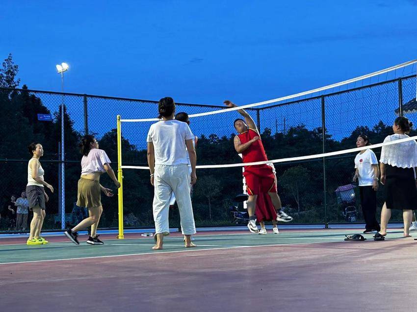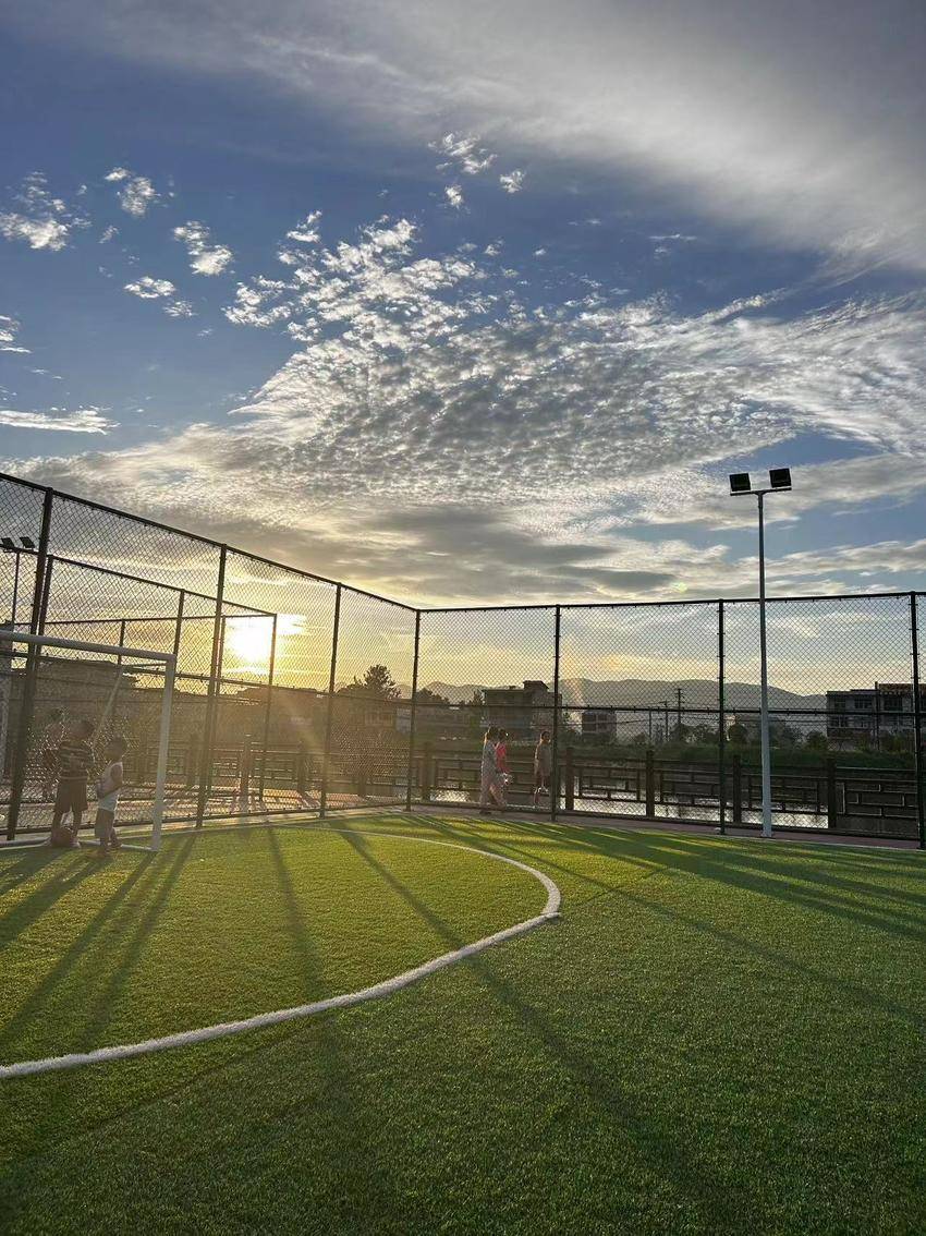 你走过最美的乡村路是什么样子,是绿树成荫、繁华似锦;是春风十里、蔓草芳苓亦或是,小桥流水,鸡犬桑麻。趁着晚风与夕阳,小葵花实践队成员在队长的带领下在排市镇漫步,在这里,乡村路阡陌纵横,旁边的人家也与静谧的池塘相得益彰,勾勒出排市镇的振兴画卷。随着国家政策的持续推进,乡村振兴战略如同一盏明灯,照亮了中国乡村发展的新路径,排市镇也不例外。小葵花实践队发现,在学校旁边,设有专门的体育公园,可供不同年龄段的村民们休息与娱乐。在了解了这附近的乡村景观后,小葵花支教团队也积极融入到了他们的娱乐活动中来,去感受这里的人文。夕阳的余晖洒落在公园的操场上,映射着他们的倒影,他们欢笑着,在这里挥洒着快乐的汗水。无论是打排球,打羽毛球还是跟着阿姨们跳广场舞,他们都其乐融融。在这里他们不仅在学习,也在不断实践,小葵花队员表示经历了今天的娱乐,他们都体会到了乡村生活的魅力,也在不断感叹国家乡村振兴战略的伟大。乡村振兴战略还在持续推进,小葵花实践队表示他们都期待更美的排市镇。