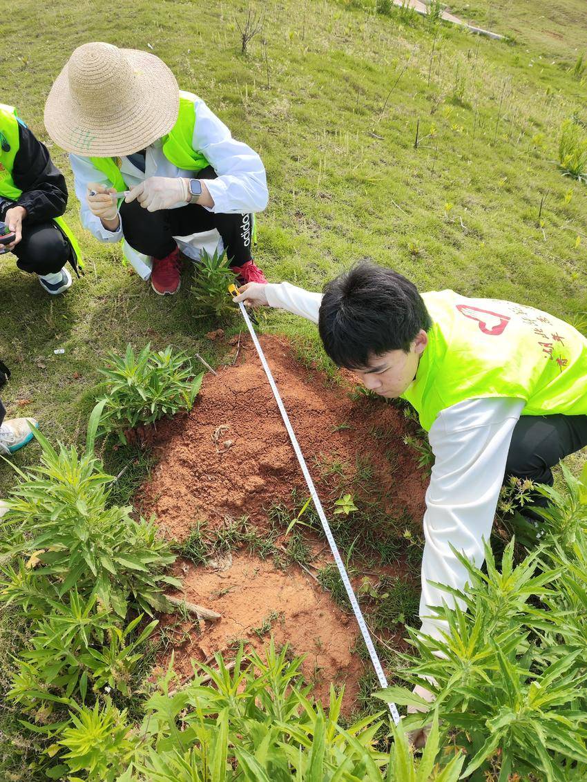 实践队员进行红火蚁巢穴测量与采样 摄影:张良