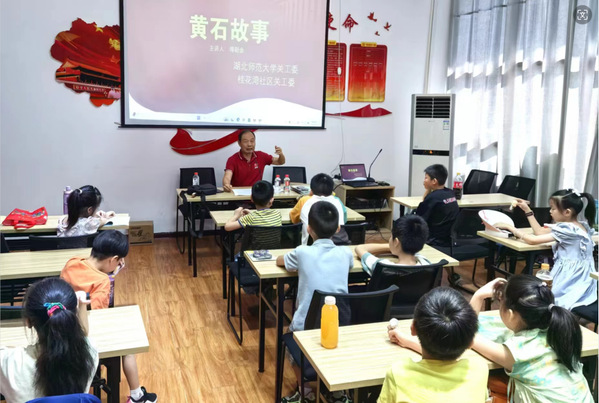 7月30日上午,桂花湾社区活动室内,数学专业老教授傅朝金饱满深情地讲述着“黄石的故事”,让在座的40余位小同学们对自己居住的黄石一些地名由来和解放后黄石进步发展有了了解。作为一位见证者、参与者、奉献者,傅教授用自己的经历讲述着。傅教授最后还向孩子们强调了暑期防溺水安全的重要性和一些小知识,现场进行了防溺水知识抢答小互动,让孩子们牢固树立珍爱生命的意识,同时也增强了孩子们的安全意识和自我保护能力。