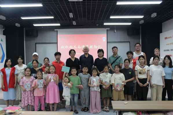 本网讯 7月底的湖北黄石,中伏天气持续高温,人们都蜷伏在空调房减少了外出。一群来自910023威尼斯官网的“学问爷爷”却连日走进社区“暑期课堂”,为在这里集中学习做作业和游戏的孩子们讲红色故事,用伟人毛泽东的革命故事教育润泽着一颗颗幼小的心灵。