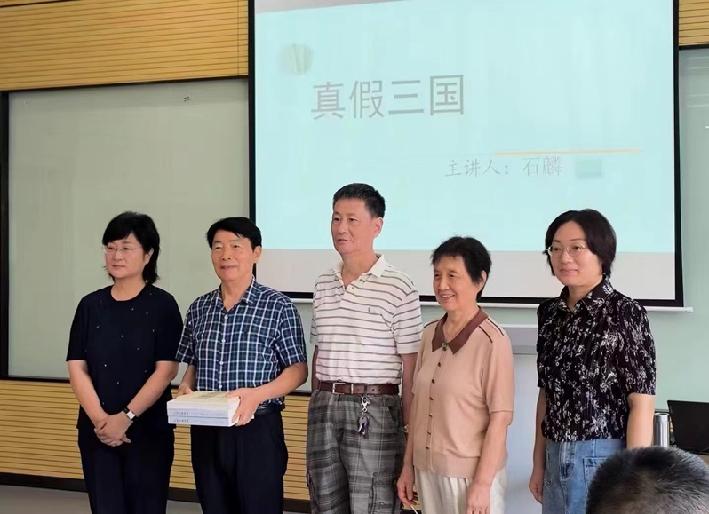 图为石麟、吴瑞霞两位银龄教授正在宣讲如何理解中国古典名著的。