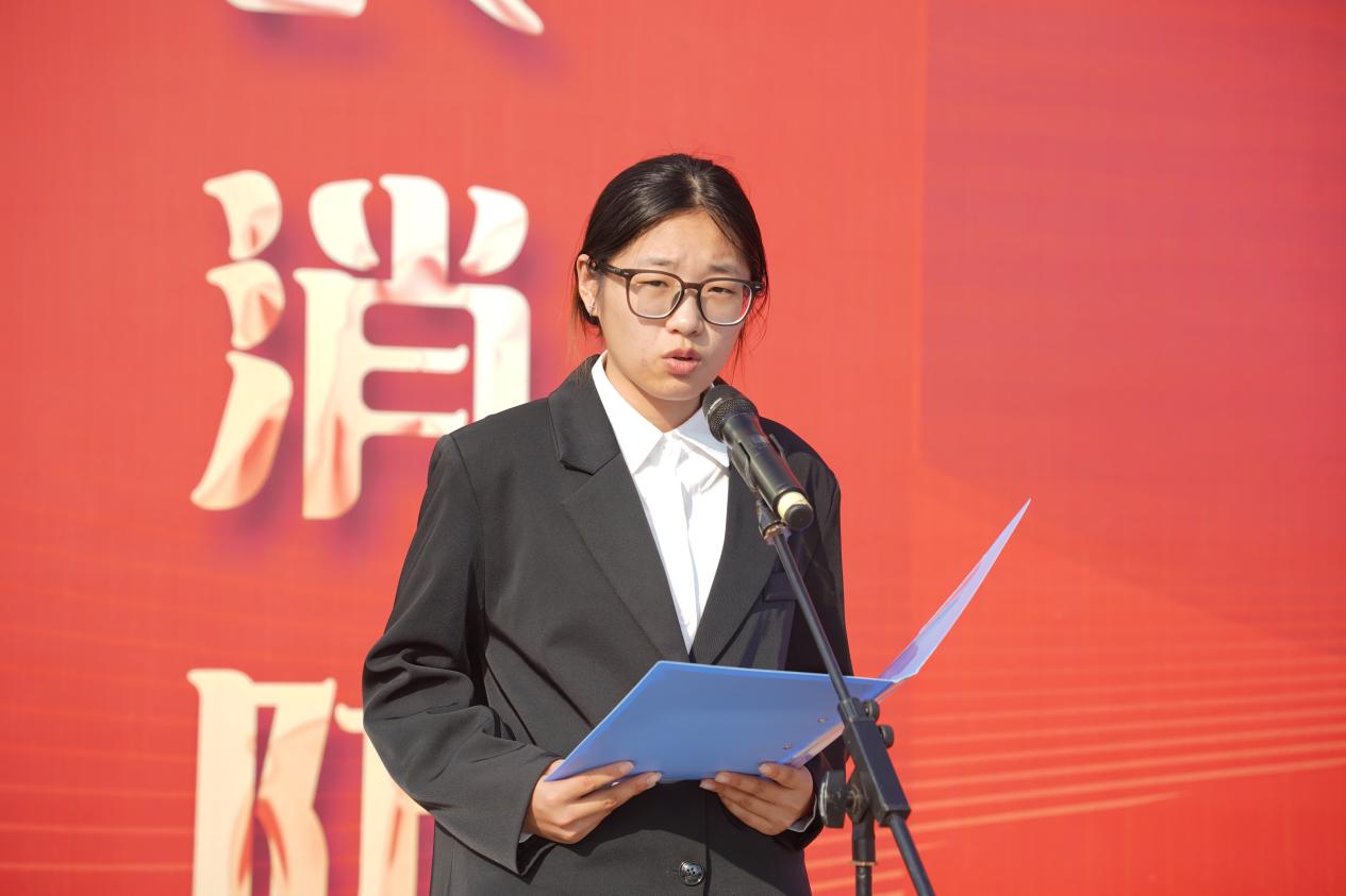 学生代表刘丹在发言中表示,作为一名大学生,要严格遵守校规校纪,把在演练中学到的知识、技能转告给班级每一位同学,做学校消防安全工作的宣传员。