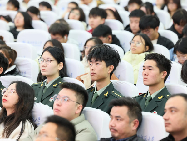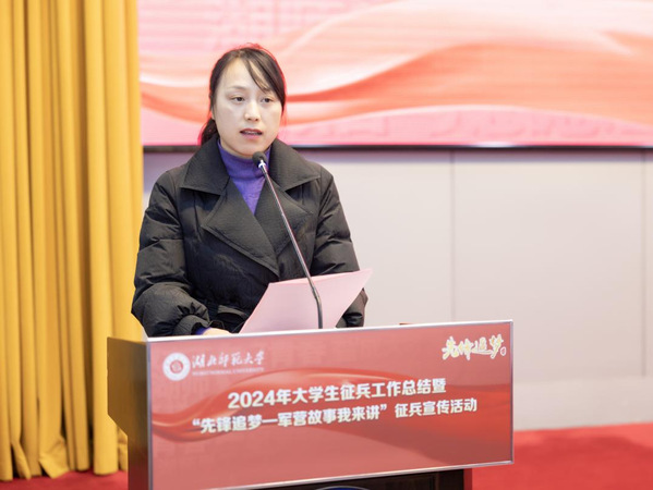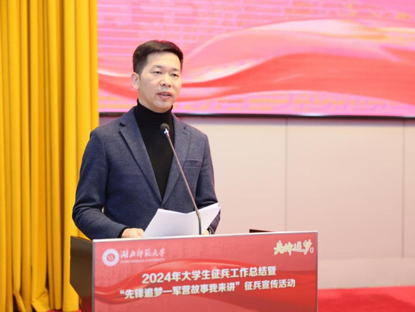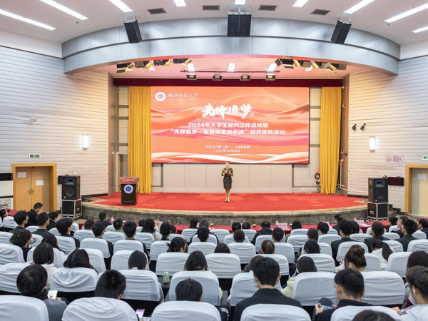 本网讯 为深入学习贯彻党的二十届三中全会精神,引导广大学子自觉将个人梦与强国梦、强军梦相结合,鼓励更多优秀学子携笔从戎,献身国防。11月28日下午,学校2024年大学生征兵工作总结暨“先锋追梦——军营故事我来讲”征兵宣传活动在教育大楼报告厅顺利举行。校党委宣传部学生工作部(处)、人武部、教务处、研究生院、招就处、保卫处以及团委的负责人出席活动。征兵工作领导小组成员,各学院负责人武工作辅导员及学生代表共计400多人参与活动。