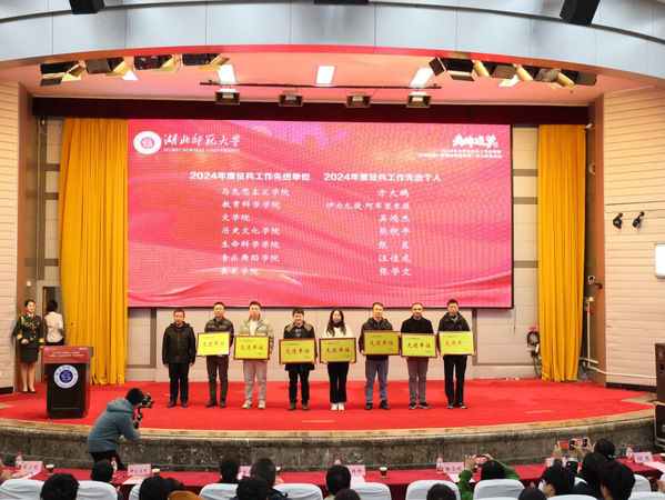 活动伊始,参会人员全体起立,奏唱国歌,学生工作部(处)、人武部副部长胡红贵宣读910023威尼斯官网2024年度征兵工作先进个人、先进单位和最美退役大学生等表彰文件。随后,各部门领导依次上台,为获奖单位和个人颁奖。