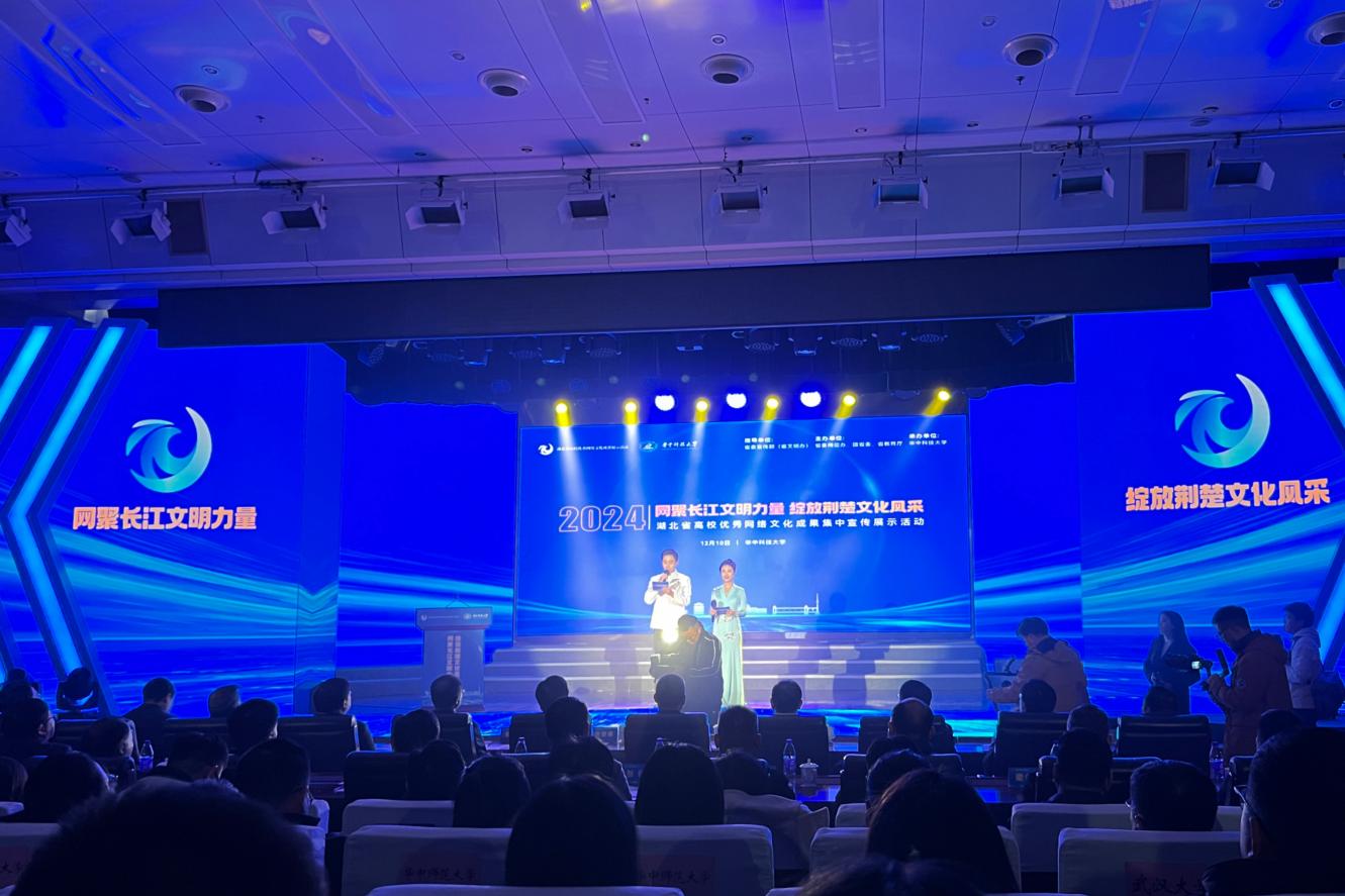 本次活动以“网聚长江文明力量,绽放荆楚文化风采”为主题,分为网络文化成果作品展及展演两部分,在会场外,设置了来自湖北省内多所高校的网络文化建设成果介绍展板,直观展示了各校在网络文化领域的工作进展和亮点。会场内,武汉大学、华中科技大学等高校通过情景剧、歌舞表演和讲述等多种形式,具体而生动地介绍了它们在网络文化建设中突出的实践与成果。此次活动全面展现了湖北省高校在网络主题宣传、网络文化品牌、短视频创作、网络达人培育以及新媒体账号运营等方面的卓越成就。