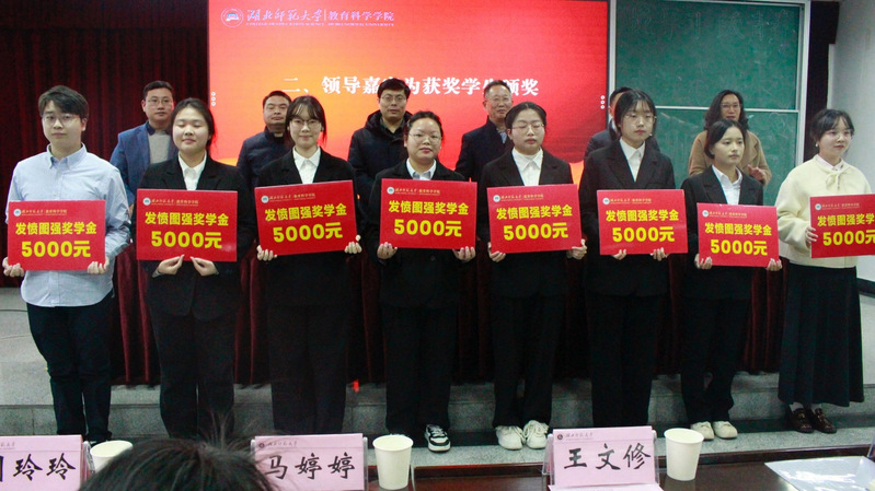 涂艳国院长在讲话中阐述了设立发愤图强奖学金的初衷,深入阐述了教育家精神的内涵,表达了对同学们的殷切期望,希望同学们发愤图强,践行教育家精神。