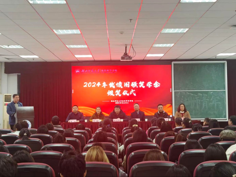 本网讯 为表彰优秀学生,鼓励学生发愤图强、积极向上。12月12日下午,威尼斯官网教育科学学院在信息大楼报告厅举办了“2024年发愤图强奖学金”颁奖仪式。教育科学学院涂艳国院长,校友工作处处长刘洋,学工部(处)副部(处)长熊英,教育科学学院党委书记杨志丹,副院长崔波,副院长张小菊,班主任代表,学工办全体成员出席仪式,获奖学生与24级部分新生参与仪式。仪式由教育科学学院党委副书记刘广兵主持。