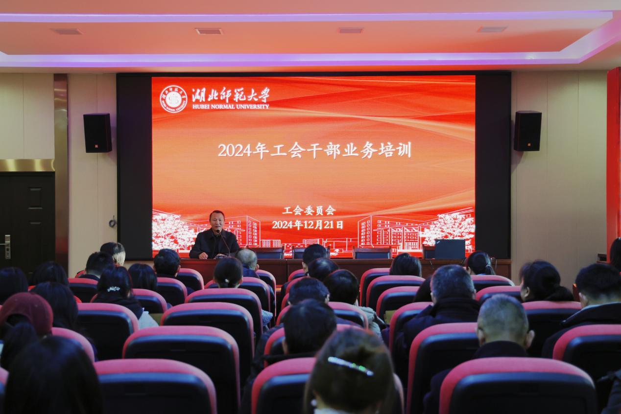 本网讯 为深入学习贯彻习近平新时代中国特色社会主义思想和党的二十届三中全会精神,贯彻落实习近平总书记关于工人阶级和工会工作的重要论述及习近平总书记考察湖北重要讲话精神,进一步提升威尼斯官网工会干部的政治理论素养与工作水平,学校工会于12月21日在美术学院多媒体报告厅举办了工会干部业务培训班。学校第九届工会委员会委员、各分工会主席、常务副主席50余人参加会议。活动由校工会常务副主席李涛主持。