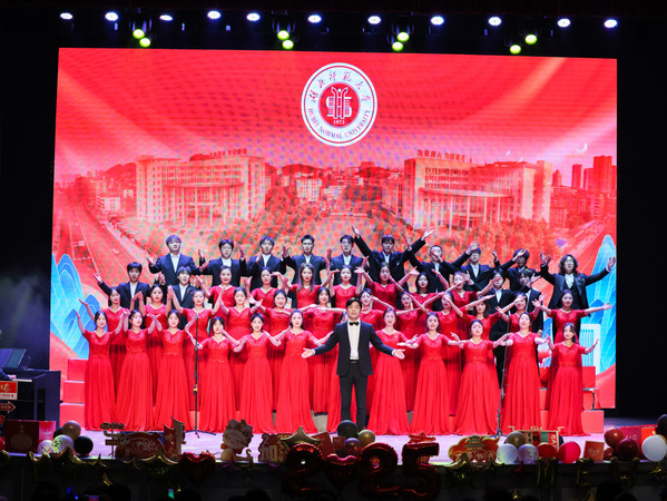 晚会尾声,音乐舞蹈学院师生共同演绎的歌舞《再一次出发》情感饱满、气势恢宏,以艺术的形式传达出积极向上的精神内涵,激励全校师生以全新的姿态踏上新征程。