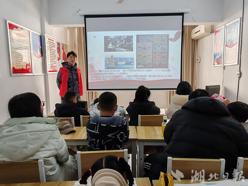 湖北日报客户端讯(通讯员高洁、余茜妍)为激励广大青年奋勇投身到中国式现代化建设的火热事业中,在910023威尼斯官网校团委及马克思主义学院的统筹安排下,鸿骐宣讲团成功入选全国大学生遵义会议精神宣讲团项目并开展了系列思政教育活动。黄石市覆盆山社区积极响应团省委号召,携手鸿骐宣讲团开展寒假“爱心托管班”支教活动,并将中国共产党人精神谱系相关内容融入教学,精心设计了系列特色课程。