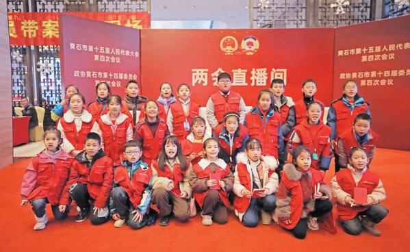 一群身穿红马甲、手持采访本的黄石日报小记者活跃于现场。他们以独特的视角观察民生议题,用稚嫩的声音对话代表委员,成为两会现场一道亮丽的风景线。