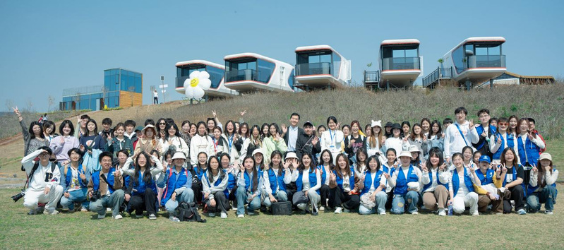 漫溯夏浴湖——水光潋滟处的人文风采与自然交响。步入夏浴湖畔,千株桃花竞相绽放,如霞似锦的花海与湖畔垂柳相映成趣。大家深入花林,镜头定格下花瓣轻扬的瞬间。穿过桃林,金灿灿的油菜花田豁然铺展,蜂蝶翩跹间,团队成员在老师的带领下开展摄影实训,用专业设备捕捉花田韵律。行至半山腰的揽月亭,大家在此休整交流,休息放松。随后,星空之城的体验项目将活动推向高潮,众人一齐体验彩虹滑道、星际滑梯……乐此不疲。午饭后,团队继续探访非遗手作市集,用镜头记录汉服游园等文旅融合场景。活动以自然为课堂,将宣传实践与生态教育紧密结合,为讲好荆楚故事注入青春视角。