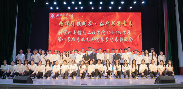 本网讯 为表扬在学业、科研等方面表现优异的学生,激励全体同学积极进取,营造良好的学习氛围,秉持“用仪式激发拼劲,以优秀带动优秀”的理念,计算机与信息工程学院于4月25日晚在湖师大礼堂开展了以“榜样引领成长·奋斗书写青春”为主题的2024-2025学年第一学期2024级专业优秀学生表彰大会。校党委副书记、副校长余涛作为2024级班主任出席活动,学院班子成员、各系主任、教学办、24级各班班主任、全体辅导员老师和2024级全体学生共同参与了本次活动。