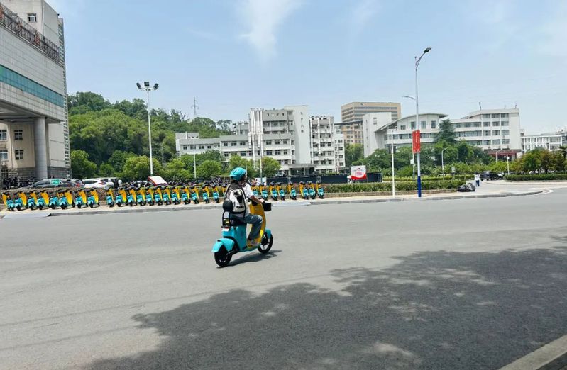 今年3月底,在与第三方公司的合作下,500辆共享电动自行车正式投入运营。湖北湖师教育科技发展有限公司综合事业部负责人石玉林介绍,投入运营的车辆除需符合新国标外,还增设了陡坡缓降、超载限制、超速限制和佩戴头盔启动等功能。“佩戴头盔启动功能采用的是目前市面上最先进的红外感应技术。”石玉林说,“在骑行的过程中,只有头盔佩戴后方可骑行,中途取下头盔车辆自动断电。”扫描共享电动自行车上的二维码后,记者看到,车辆单次起步价为1.4元,用车时长超过15分钟,则按0.5元每10分钟补充收费。此外,学生还可以根据自身情况选择办理月卡、季卡、半年卡、年卡。在骑行过程中,记者发现共享电动自行车最快车速为18km/h,有效规避了骑行安全隐患。目前,该校共享电动车设有12处停车位点,且仅在教学楼区域运营。石玉林解释,宿舍区域学生自购的电动车停放数量较多,因此暂时未将共享车辆引入该区域。湖北理工学院校园面积广阔,东西距离长达3.5公里,教学区、生活区和活动区分布较为分散,学生日常出行需求较大。该校保卫处处长韩幸介绍,自去年9月起,学校逐步投放共享电动自行车,目前校园内已有750辆。学校在各个学生宿舍门口设立了停车区,方便学生日常出行。他补充,共享电动自行车由专业团队负责管理,每天定时巡查停车点,规范车辆停放秩序,车辆的集中充电模式也避免了违规充电带来的消防隐患。