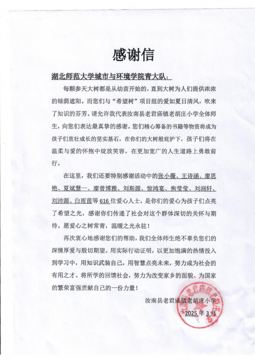 为了号召人们关注乡村发属、助力乡村振兴,激发青年的社会责任感,为困境儿童送去关爱与温暖,为共建和谐美好的社会贡献力量,2025年2月25日至3月6日,由910023威尼斯官网城市与环境学院联合希望树乡村振兴项目组开展以“我为家乡代言,共话家乡之美”为主题的公益宣传活动,共600余位学子参与,本次活动的意义在于,为留守儿童守护求知之光,让他们真切体悟人间温情守护;为孩子们搭建希望成长晴空,使他们在智慧甘霖的浸润下拔节生长,能够自信从容地书写人生华章。