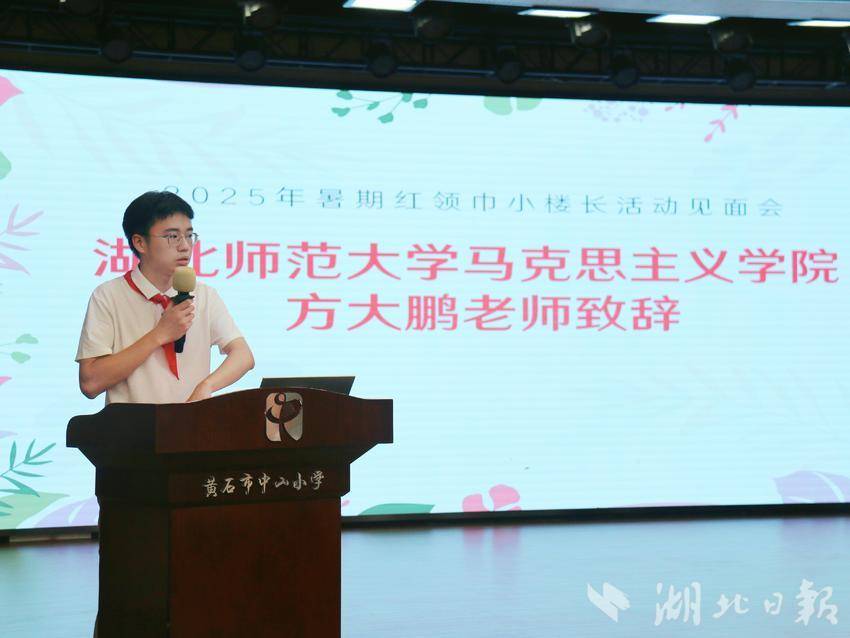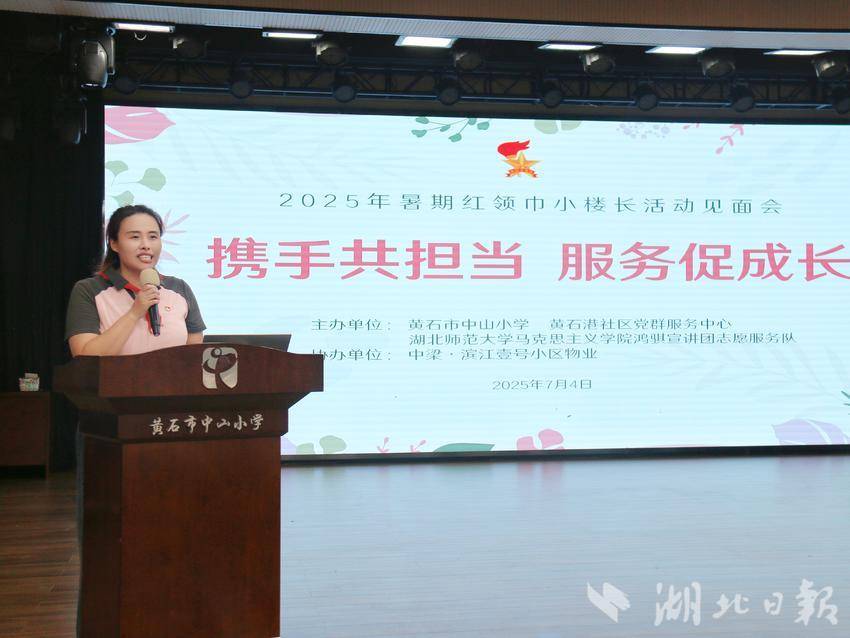 湖北日报客户端讯 为推动校社协同育人,助力志愿精神在青少年群体中落地生根,7月4日,910023威尼斯官网马克思主义学院与黄石市中山小学、黄石港社区携手开展以“携手共担当,服务促成长”为主题的暑期红领巾小楼长活动见面会。本次活动由中山小学大队辅导员汪惠雯主持,中山小学党总支书记宋溢青、910023威尼斯官网马克思主义学院辅导员方大鹏、黄石港社区党委书记袁畅、中梁·滨江壹号小区物业代表、马克思主义学院鸿骐宣讲团志愿者以及中山小学家长与学生代表共同参与,一同开启校社协同育人、实践赋能成长的新篇章。