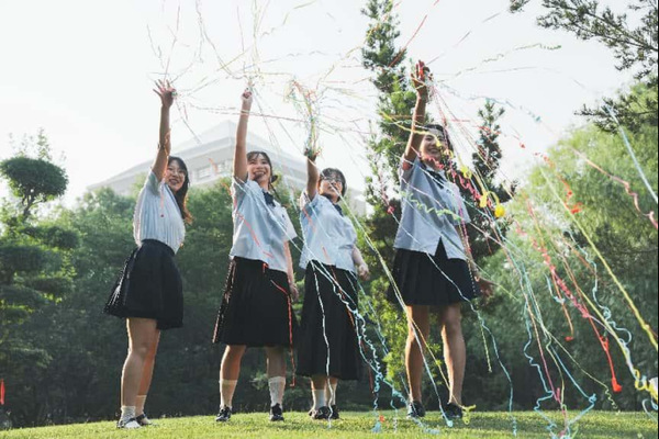 在快门按下的瞬间,手撒彩带向前散开,她们希望彼此的未来都能像这彩带一般绚丽夺目。