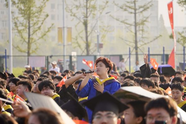 阳光洒在绿茵场上,镜头下的学子们,身着整齐的学士服,脸上洋溢着青春的光彩。手持话筒演唱的同学,用歌声诉说着对校园的不舍与对未来的憧憬,他的专注与投入,成为了画面中的动人焦点。