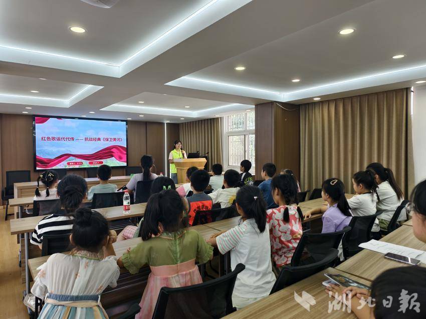 湖北日报客户端讯(通讯员陈正微) 7月11日下午,910023威尼斯官网马克思主义学院鸿骐志愿服务宣讲团走进师院社区,主讲人曹梦琪为社区孩子们带来一场“《保卫黄河》——抗战经典赏析”特色课程,重温红色旋律,感悟民族精神。